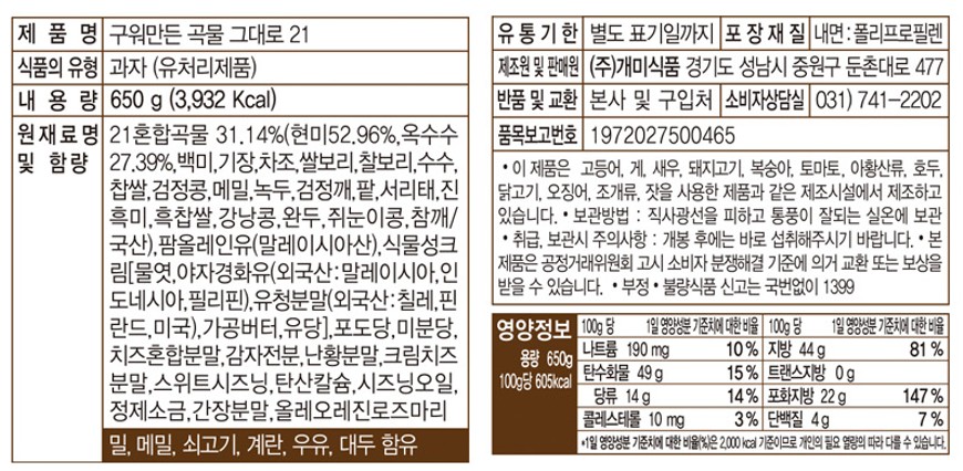 [특가] 구워만든 곡물그대로 21 (650g)