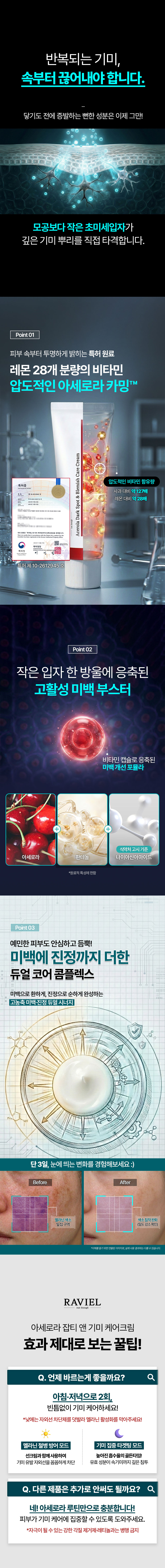 더 이상 가리지 마세요. 아세로라 비타민 폭탄이 기미 뿌리까지 직격타! 수많은 후기가 증명하는 3일의 기적, 거울 속 잡티가 흐릿해지는 속도를 경험하세요.