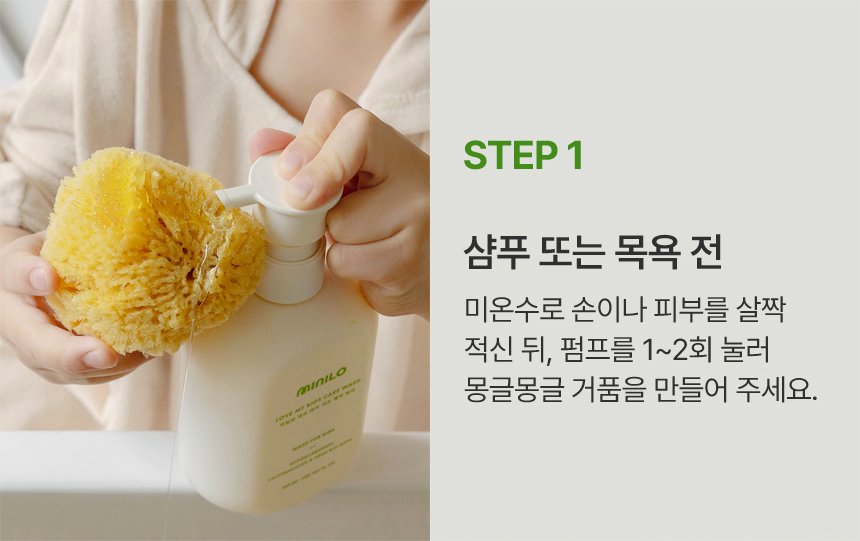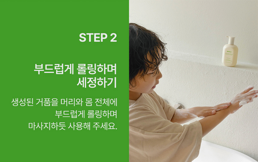 적당량을 덜어 풍성한 거품을 내어 사용합니다.