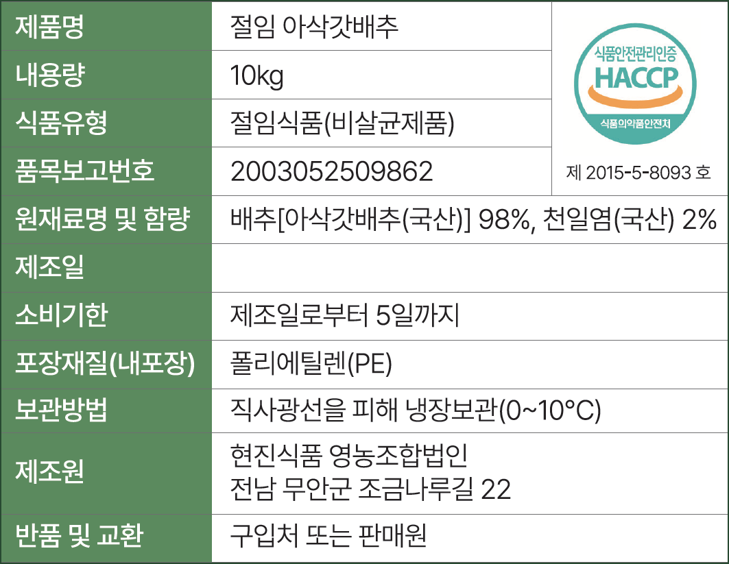 [예약주문/산지직송] Non-GMO 절임 아삭갓배추(4-5포기/10kg)