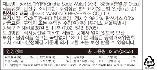 [입점특가] 싱하 소다워터 탄산수 (325ml x 6개)