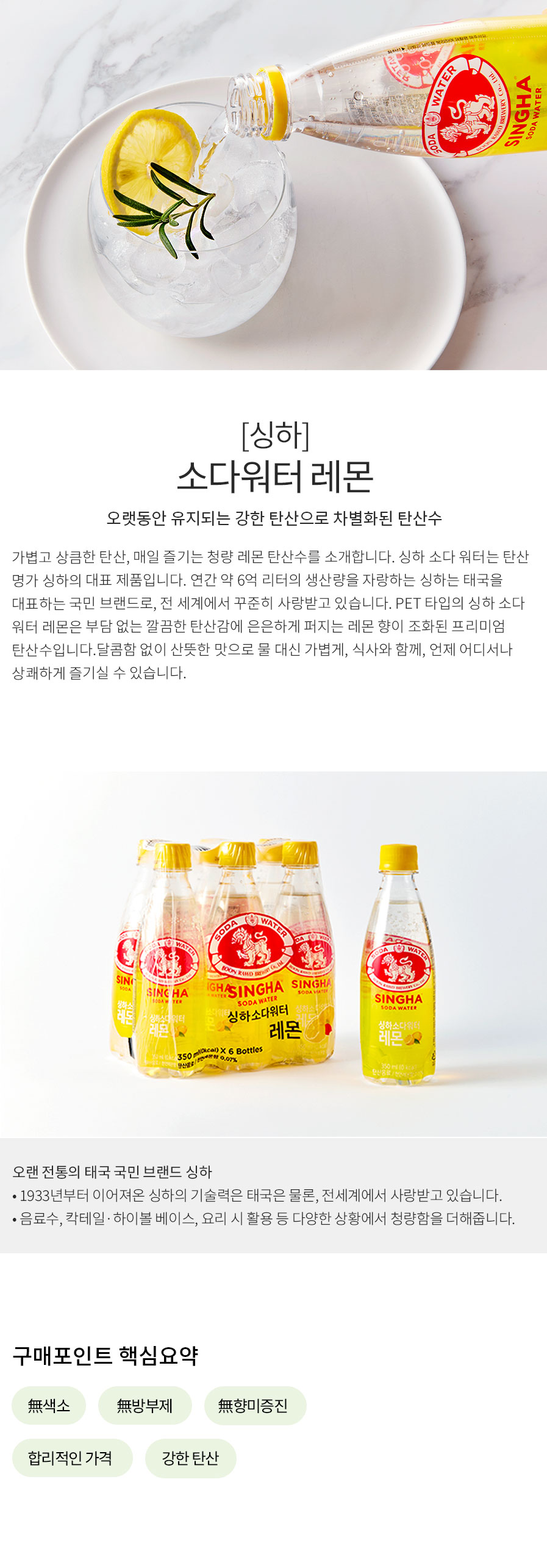 [입점특가] 싱하 소다워터 레몬 탄산수 (350ml x 6개)