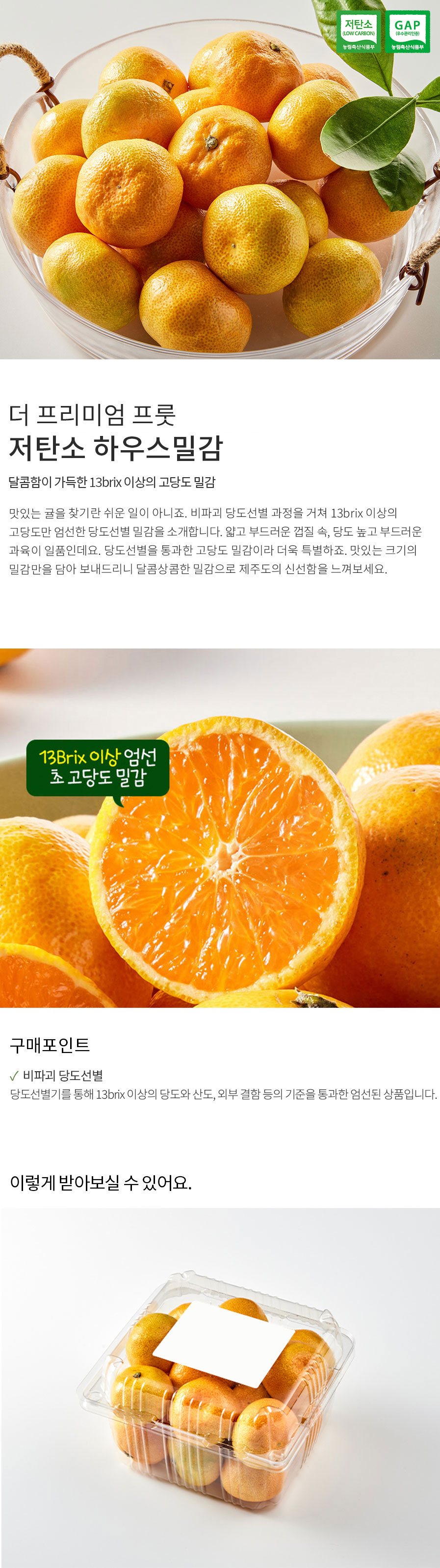 13브릭스 이상의 초고당도만 선별한 프리미엄 밀감