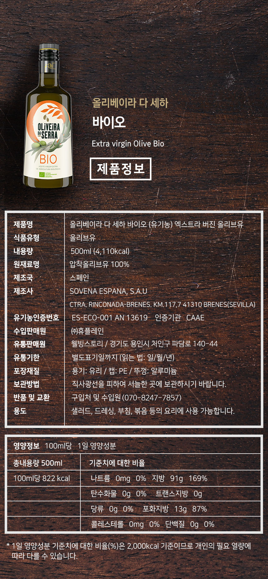 올리베이라 다 세하 바이오(유기농) 엑스트라버진 올리브유