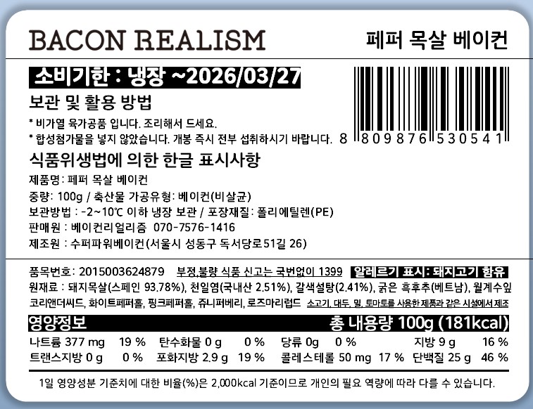 [리뉴얼특가] 통후추 목살 베이컨