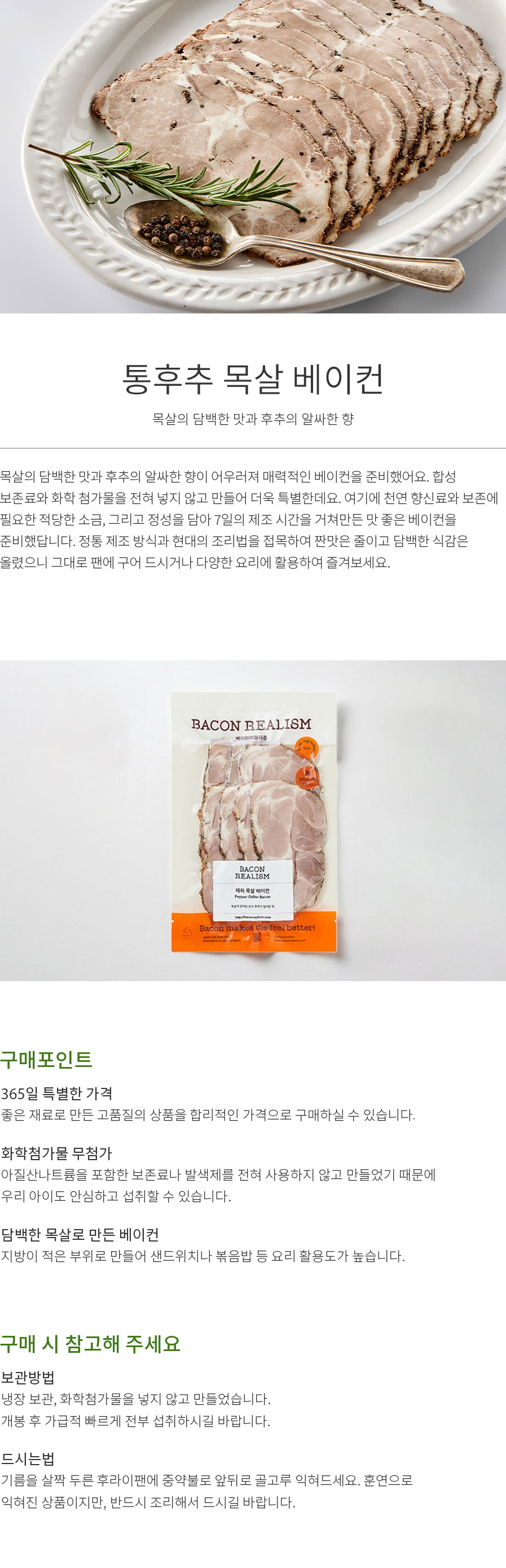 발색제, 보존료가 들어가지 않은 순수 베이컨