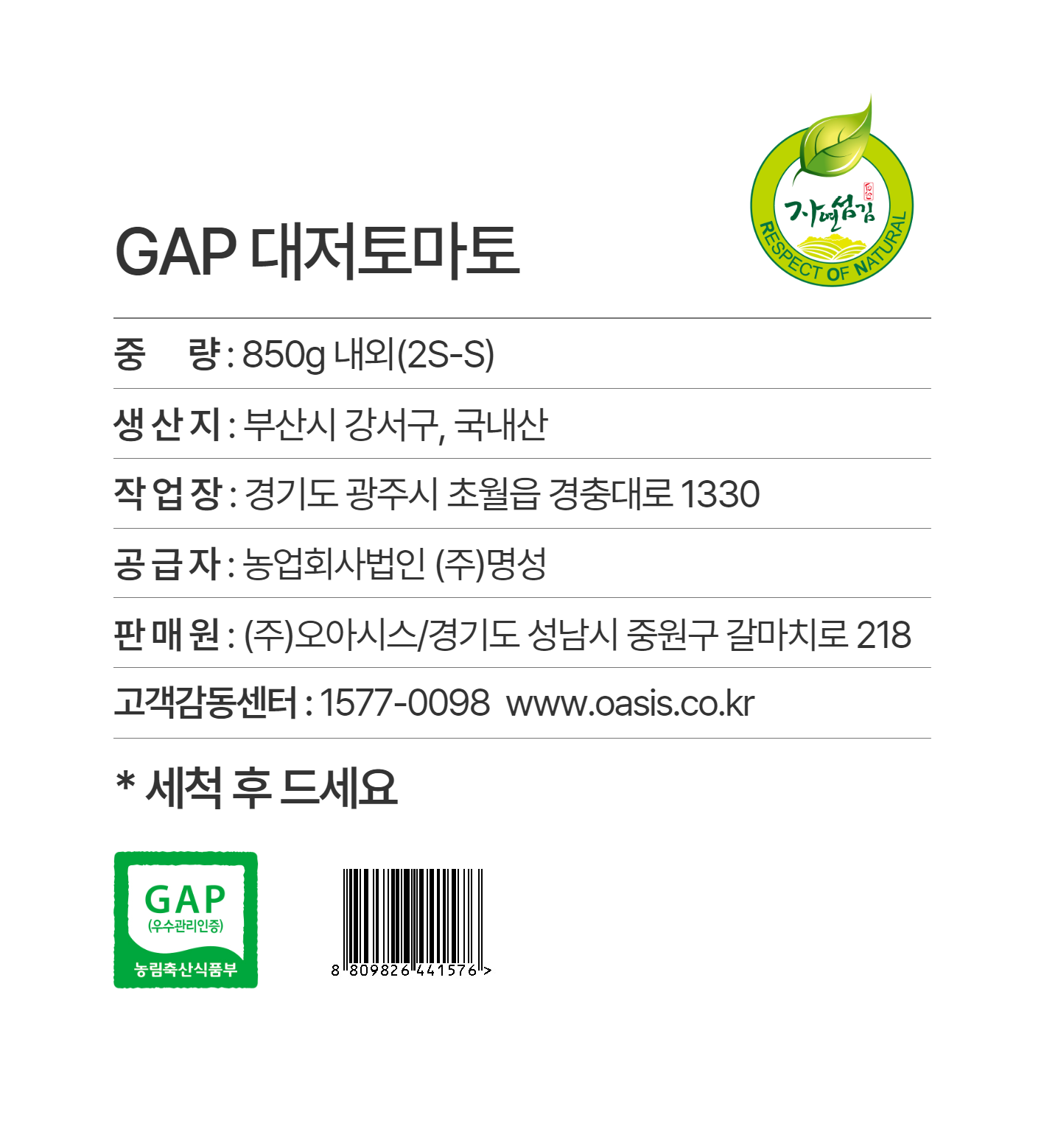 • 상호:주식회사 오아시스
