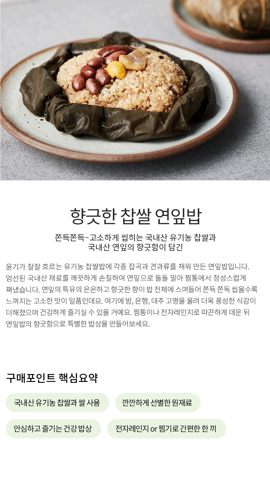 쫀득쫀득~ 고소하게 씹히는 찹쌀밥과 연잎의 향긋함이 담긴