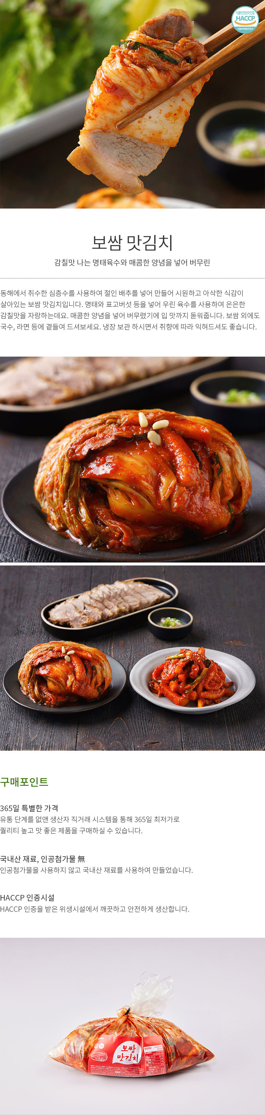 일반 김치와 달리 보쌈 김치는 고기랑 잘 어울리게 맵고 달게 제조 되었습니다.
